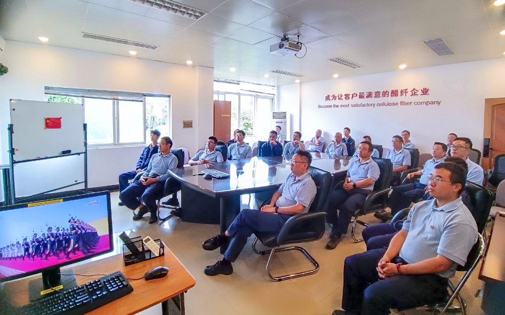 本次活動還特邀公司外方高管共同觀看。熱動、絲束生產、維修三個黨支部在所屬區(qū)域會議室集中觀看。