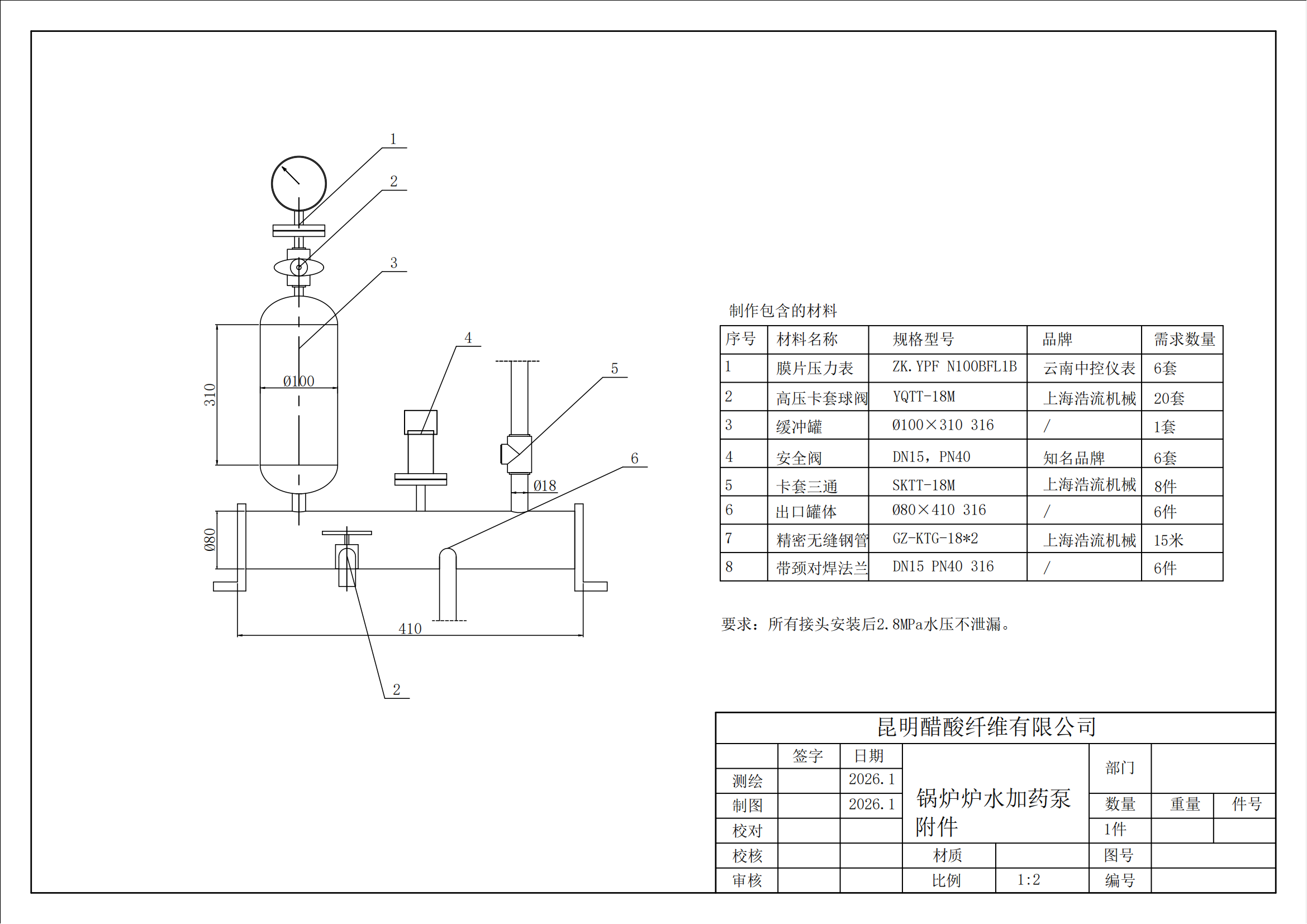 1 | 鍋爐加藥堿液泵出口緩沖罐附件制作 | 6 | SET | 2026-03-31 |